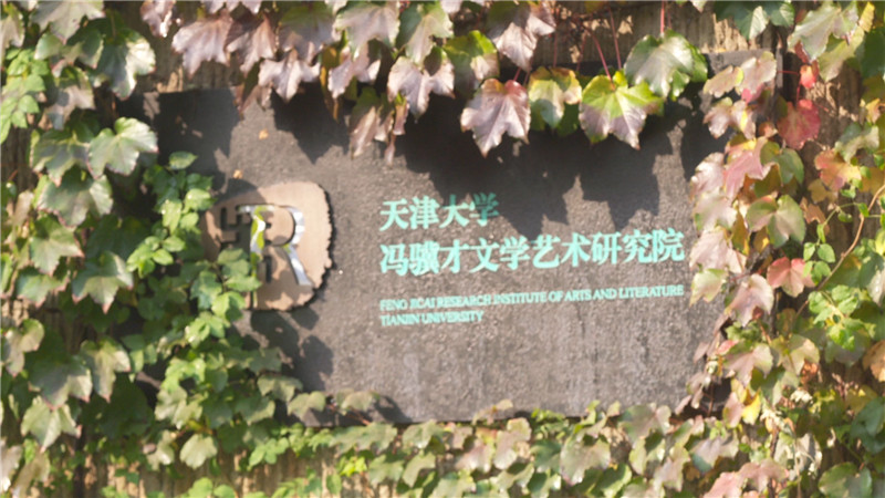 馮先生今年七十九歲,高大的身材,舉手投足間總透著一種浪漫和詩意。在庭院里,他特意挑選一枚深秋紅葉,送給朱迅,他說紅葉是他學(xué)院的“名片”,“我經(jīng)常在院子里拾了葉子夾在本子里,有時候來客人,寫兩句話送給他。”