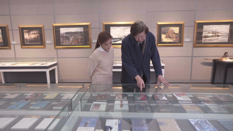 馮先生是畫家、作家,但他卻認為“所有藝術(shù)里最偉大的就是音樂”。他說: “在一個空間里,你放雄渾的音樂,你就在雄渾的氣氛里;放一個哀傷的,空間就是哀傷的;你放一個恬淡的音樂,那空間就是恬淡的。音樂有巨大的感染力。”馮先生的畫富有人文氣息,他的文章又充滿了畫面感,而文字和畫作又都是音樂感十足。“我喜歡在兩個時間聽音樂,一個是坐汽車上。車在走,外邊的風景在變化的時候,你聽音樂的感覺特別好。有的時候外邊一片風景,跟你音樂的感覺忽然能夠碰巧碰到一起了;還有一個就是寫作、畫畫的時候,放著放著,你的小說就走進音樂了,音樂也走進小說了,這時候它變成寫作一個載體。”在他的新作《藝術(shù)家們》中,再現(xiàn)了音樂、繪畫、文學之間精神的勾連和對人生的影響,馮先生把那些寫進人生的旋律“翻譯”成了文字或繪畫作品,讓它們在不同的藝術(shù)形式中相會與交織。 藝術(shù)中的文化與文明 在馮驥才文學藝術(shù)研究院中,年畫有著重要的“地位”,但這不僅僅是因為天津楊柳青年畫的影響力。馮先生曾經(jīng)說,“年畫是中國的,年畫藝術(shù)與學術(shù)是世界的”,在他看來,年畫是對中國農(nóng)耕文明的記載,是對春播、夏種、秋收、冬藏等生生不息的民間智慧的記載。在研究院的年畫展廳內(nèi),馮驥才與國家級“非遺”楊柳青木版年畫傳承人霍慶有,一同請朱迅體驗了原汁原味的年畫制作工藝?此坪唵蔚膸撞讲僮鳎甑奈拿鬈S然紙上。 ![]() 馮先生的文學藝術(shù)研究院既是一座博物館,也是文化保護與傳承研究的基地。無論是建筑還是其中的布置與陳設(shè),都體現(xiàn)了馮先生的文化積淀與審美。他拿出一大串鑰匙,帶著我們的鏡頭走進別有洞天的藝術(shù)空間,如數(shù)家珍的寶貝未必價值連城,卻都有它的文化屬性,體現(xiàn)著文明的傳承。研究院的畫館為什么叫“大樹畫館”?冰心老人親筆題詞的匾額下,那把空椅子等待何人的光臨?紅茶染過的絹帛上,馮先生那卷未完成的《清明上河圖》記載了一個青年藝術(shù)家怎樣單純的承諾與激情?在節(jié)目中他都會娓娓道來。