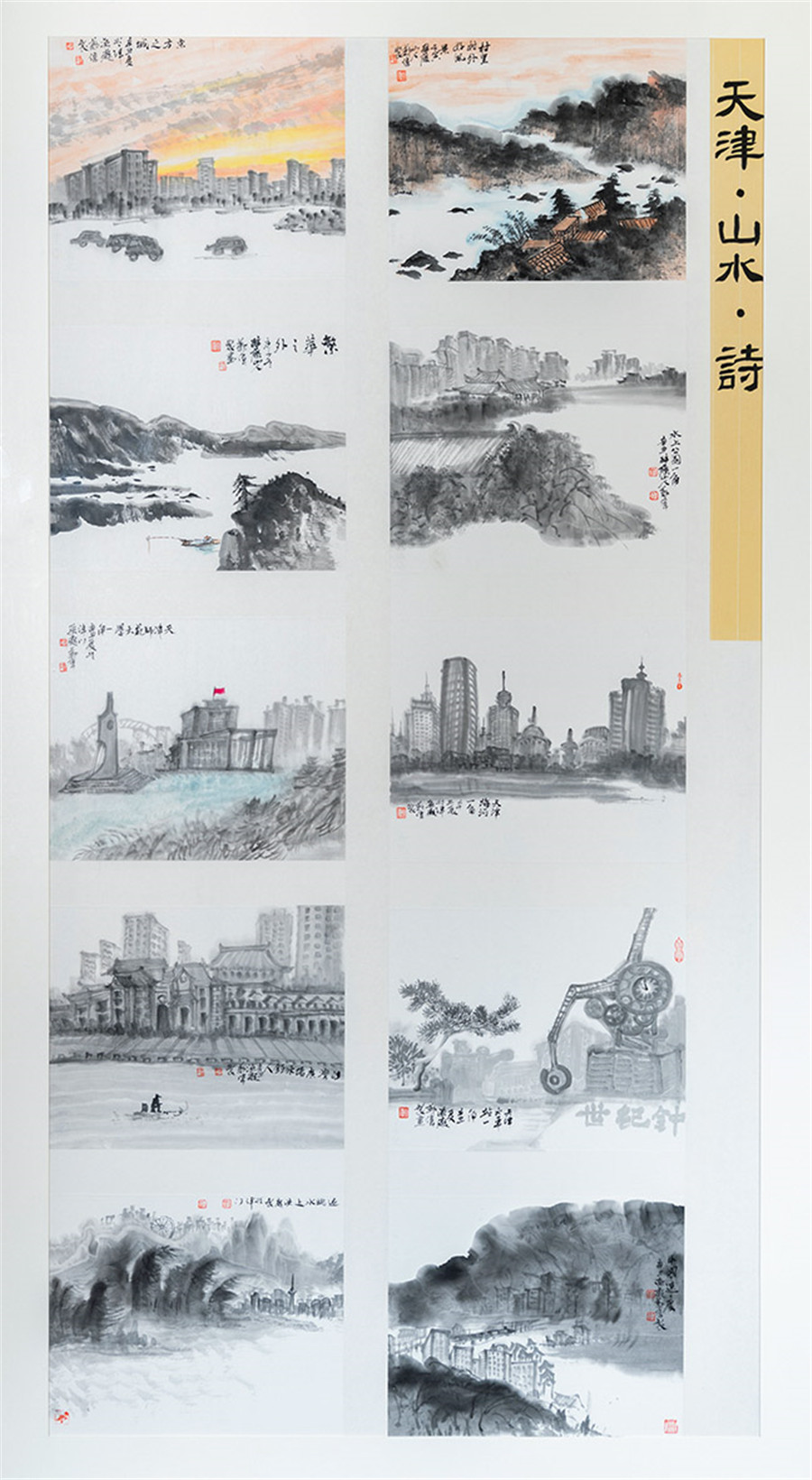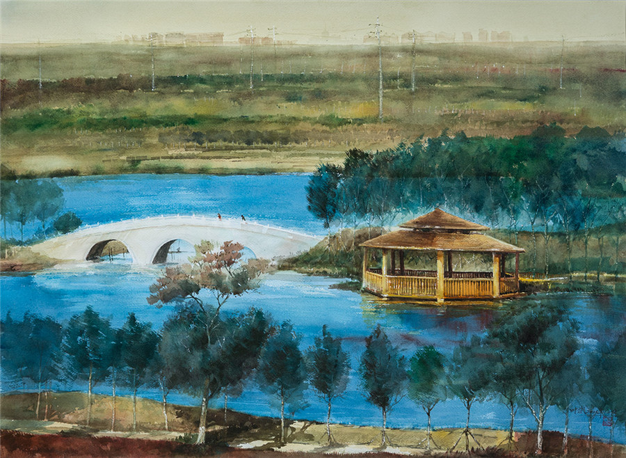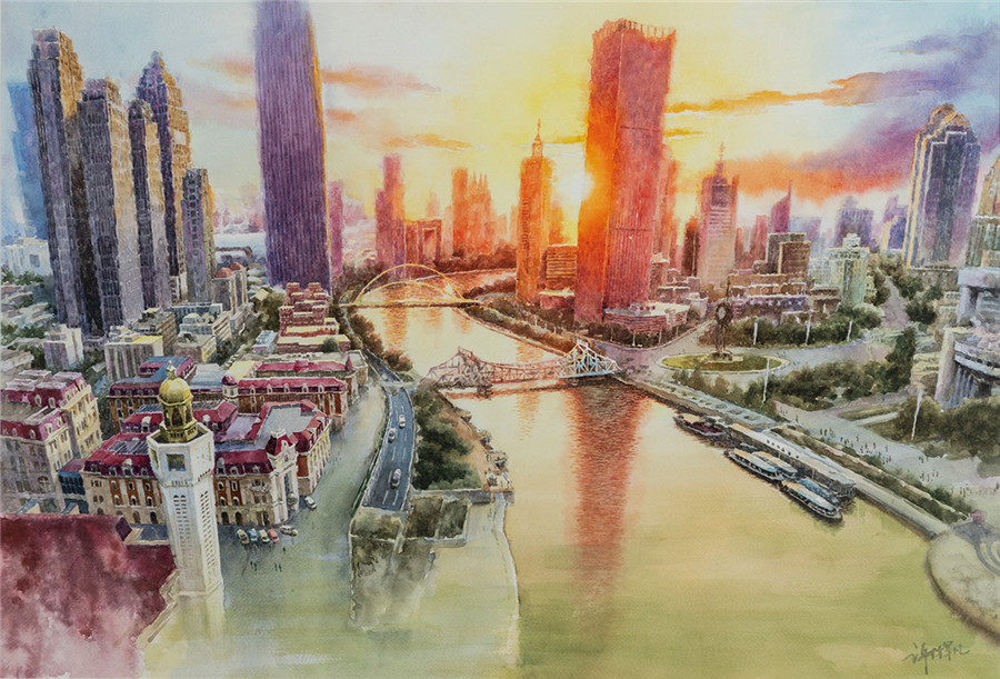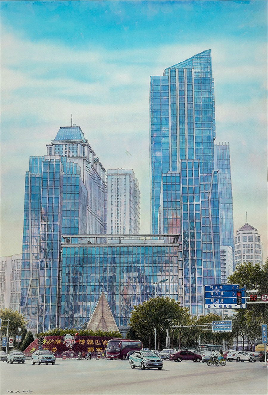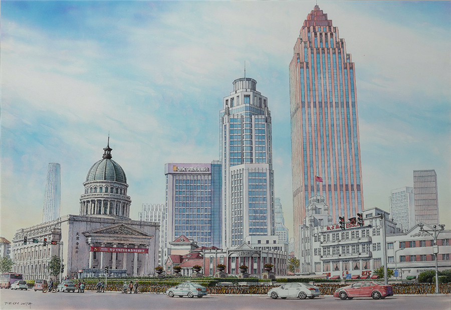 鋼筆水彩畫 《津城新貌之二》 龐恩昌