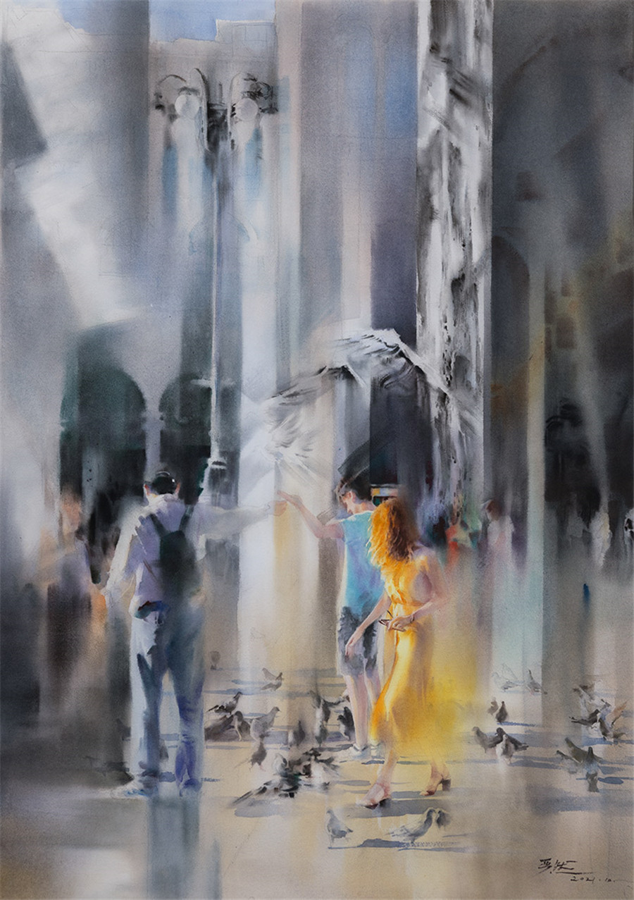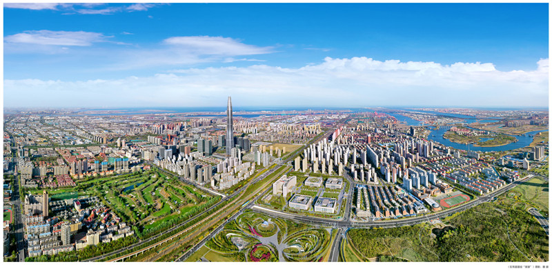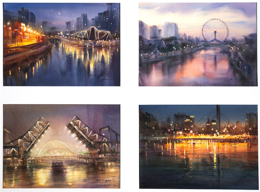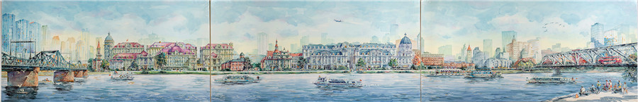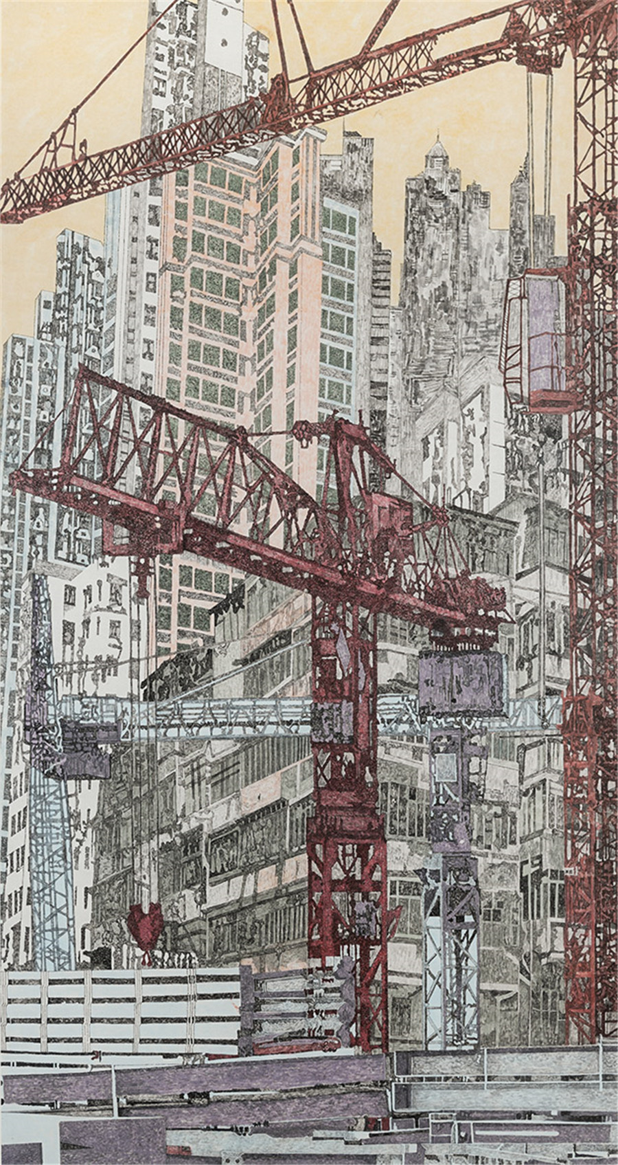 鋼筆水彩畫 《津城新貌之二》 龐恩昌