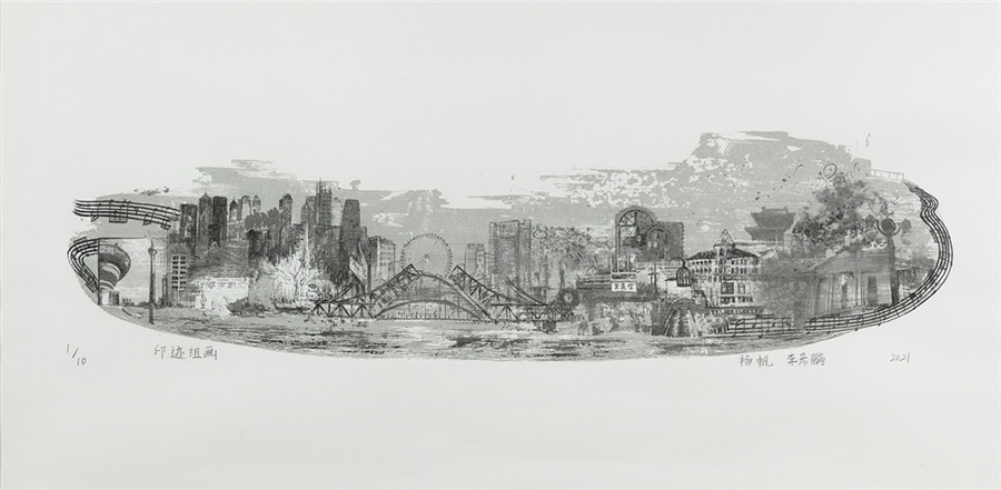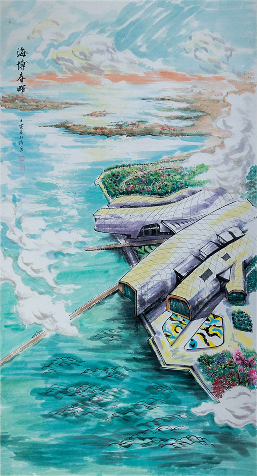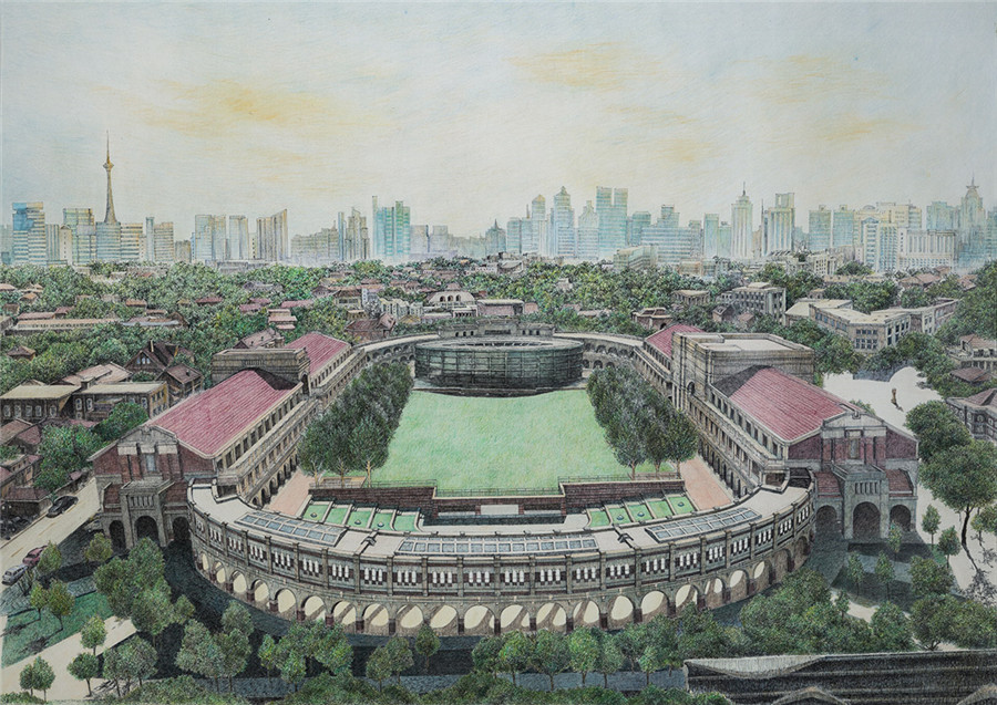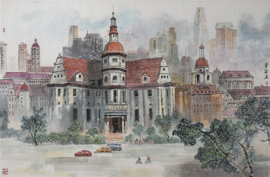 鋼筆水彩畫 《津城新貌之一》 龐恩昌