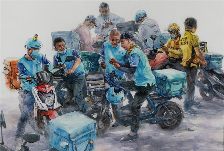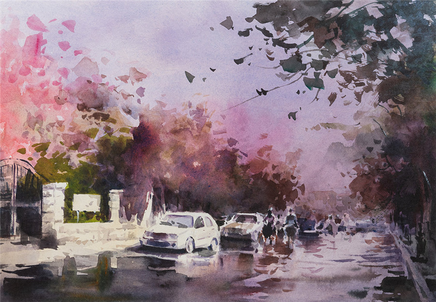 水彩 《老舊小區(qū)改造進行時》周永亮