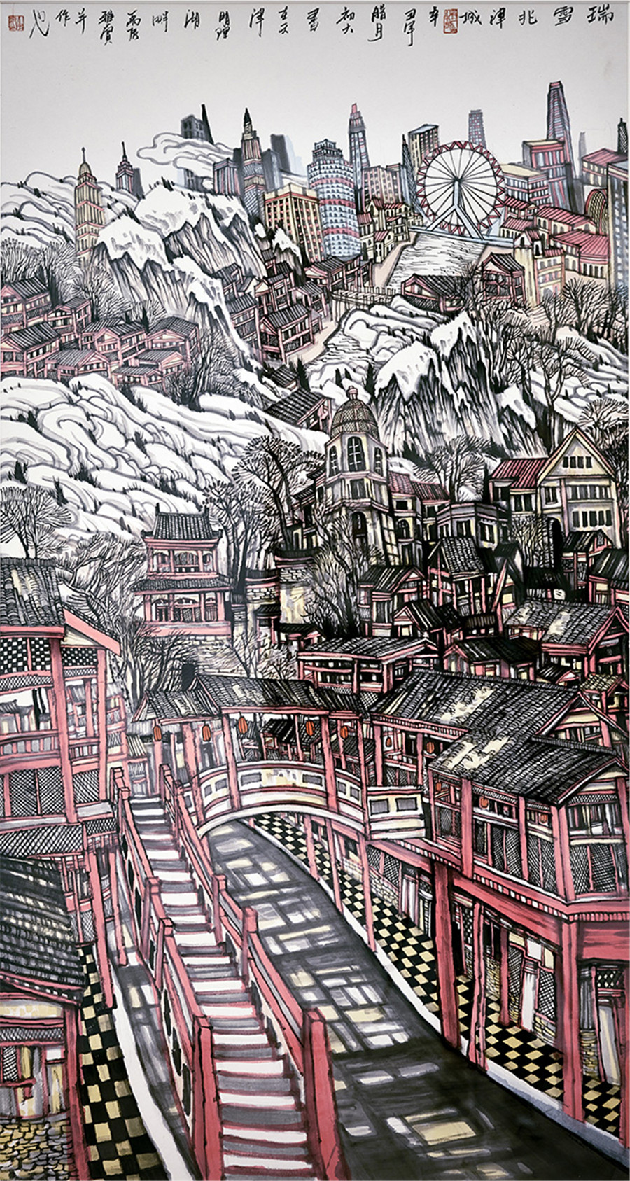 國畫《津城·瑞雪》萬禹辰 ![]()