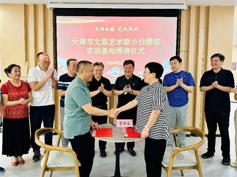 8月30日上午,天津市文學(xué)藝術(shù)界聯(lián)合會攜手小白樓街道黨工委,在全國人大法工委天津市和平區(qū)小白樓街基層立法聯(lián)系點,舉辦“文潤白樓 藝化民心——小白樓街建立天津市文聯(lián)藝術(shù)家實踐基地授牌儀式”。 當(dāng)前,全市上下正在把學(xué)習(xí)好貫徹好黨的二十屆三中全會精神作為當(dāng)前和今后一個時期的一項重大政治任務(wù),深刻領(lǐng)悟“兩個確立”的決定性意義、堅決做到“兩個維護(hù)”,深刻領(lǐng)會和把握進(jìn)一步全面深化改革的主題、重大意義、重大原則、重大舉措和根本保證,把中央全會繪就的全景圖全面落實到津沽大地上。天津市文學(xué)藝術(shù)界聯(lián)合會黨組積極探索深化“四個以文”體制機(jī)制改革創(chuàng)新,健全“以文化人”制度機(jī)制,完善“以文惠民”供給方式,優(yōu)化“以文潤城”品牌模式,創(chuàng)新“以文興業(yè)”體系業(yè)態(tài),推進(jìn)文化傳承創(chuàng)新發(fā)展。本次掛牌儀式旨在推動天津市的文藝創(chuàng)作、培養(yǎng)文藝人才、開展文藝惠民活動,為文藝工作者深入生活、扎根人民創(chuàng)造良好條件的同時,提升基層文藝工作者藝術(shù)水平,豐富人民群眾的文化生活,提高社會公眾的文藝素養(yǎng),同時,以群眾喜聞樂見的“文藝+”形式開展普法、立法宣傳。 掛牌儀式前,市文聯(lián)領(lǐng)導(dǎo)及多位文藝家協(xié)會負(fù)責(zé)人在講解員的帶領(lǐng)下參觀了小白樓街基層立法聯(lián)系點,對立法點工作有了初步了解。今后,基層立法點將作為采風(fēng)站點之一,方便市文聯(lián)藝術(shù)家搜集貼近老百姓的立法、普法素材,創(chuàng)作更貼近人民群眾需求的節(jié)目,進(jìn)一步推動立法、普法工作深入民心。 活動現(xiàn)場,天津市文聯(lián)黨組成員、二級巡視員劉志勇,小白樓街黨工委書記劉玫共同為實踐基地揭牌,天津市文聯(lián)與小白樓街黨工委簽訂文化共建協(xié)議。市文聯(lián)文藝家協(xié)會音、舞、書法、文藝志愿、文藝評論等方面的藝術(shù)家代表和街道文化團(tuán)隊代表進(jìn)行結(jié)對。 今后實踐基地將為全市廣大文藝工作者深入生活、扎根人民創(chuàng)造良好條件,為長期開展“深入生活、扎根人民”主題實踐活動,持續(xù)推動文藝創(chuàng)作、培養(yǎng)文藝人才、開展文藝惠民活動提供重要依托和平臺載體。市文聯(lián)藝術(shù)家也將定期對社區(qū)文化團(tuán)隊進(jìn)行指導(dǎo)幫扶,共同創(chuàng)作,提升基層文藝工作者藝術(shù)水平,豐富人民群眾的文化生活,提高社會公眾的文藝素養(yǎng),為居民群眾提供高檔次的文化體驗。 最后,小白樓街口琴樂團(tuán)、翰墨飄香刻瓷社、樹德里社區(qū)京劇社、崇藝藝術(shù)沙龍分別進(jìn)行了精彩的團(tuán)隊節(jié)目展示。 小白樓街黨工委副書記田德利,和平區(qū)人大常委會小白樓街工委專職副主任譚潔,天津市文藝家服務(wù)中心負(fù)責(zé)人魯童,市文志協(xié)副主席、市音協(xié)秘書長宋茂斌,市書協(xié)副主席兼秘書長楊建君,市舞協(xié)秘書長程偉航,市文志協(xié)副主席兼秘書長王曉菁,市文藝評論家協(xié)會秘書長慕珊珊,市文藝家服務(wù)中心的鄭坤、孫穎、齊玨,以及市文聯(lián)相關(guān)工作人員張寅、杜瑋玥等同志也出席了本次活動。
