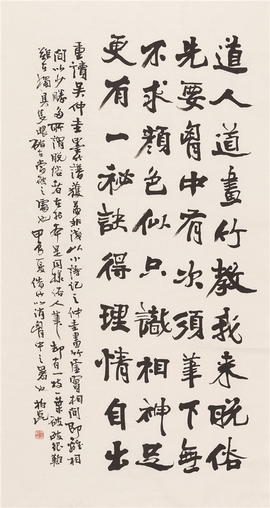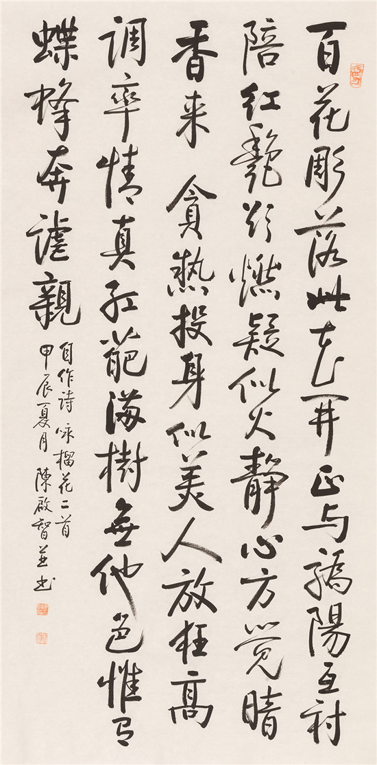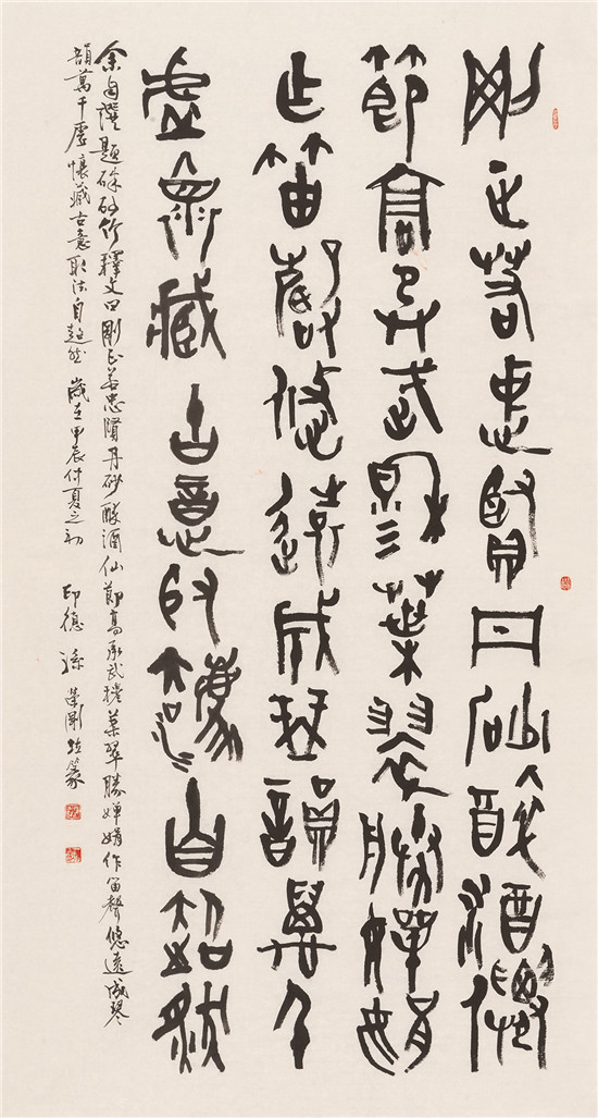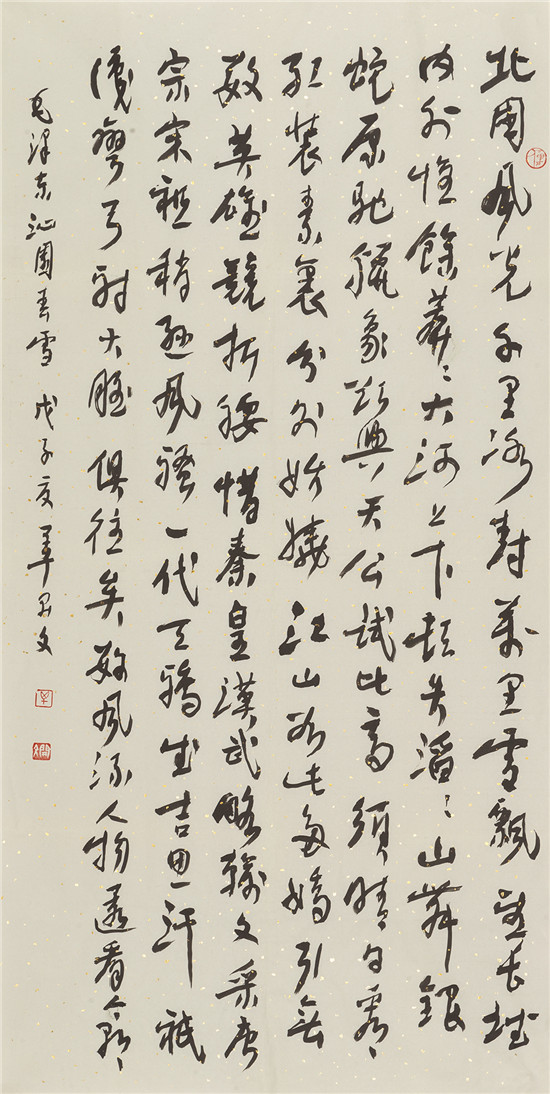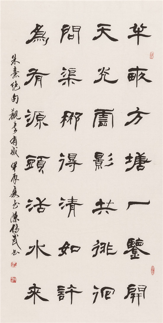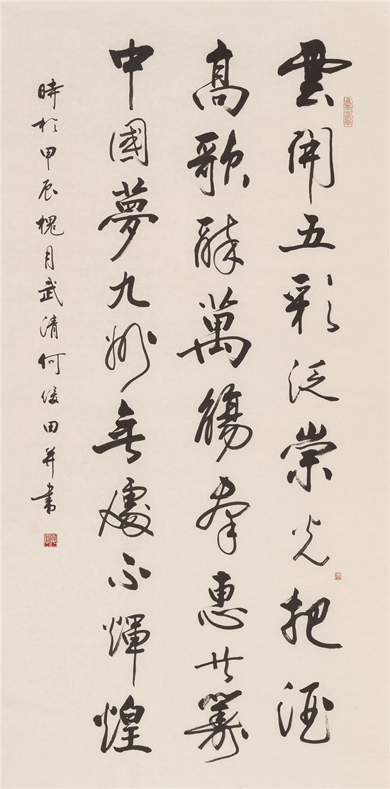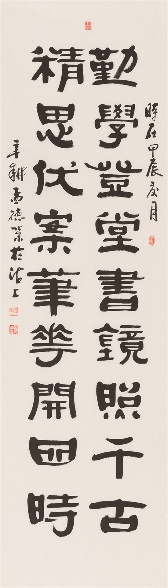 前 言 2024年是中華人民共和國成立75周年,習(xí)近平總書記在文藝工作座談會(huì)上的重要講話發(fā)表10周年。值此,天津市文聯(lián)、天津市書協(xié)主辦“天津市第十一屆書法篆刻展覽”,借以展示近幾年來天津市書法創(chuàng)作的新面貌、新成就,向新中國成立75周年獻(xiàn)禮! 此次天津市第十一屆書法篆刻展覽,以習(xí)近平新時(shí)代中國特色社會(huì)主義思想為指導(dǎo),以社會(huì)主義核心價(jià)值觀為引領(lǐng),立足時(shí)代沃土,賡續(xù)中華文脈。倡導(dǎo)講品位、講格調(diào)、講責(zé)任;追求經(jīng)典性、傳承性、創(chuàng)新性。展覽參展的二百余件書法作品,包括特邀(含評(píng)委)作品47件和從近1300件投稿作品中評(píng)選出來的入展作品154件,匯聚全市老中青優(yōu)秀書法家的篆、隸、真、行、草、篆刻作品于一堂。這些作品,不僅取法經(jīng)典、取意多元,積淀著廣泛而深厚的傳統(tǒng)底蘊(yùn);同時(shí),構(gòu)成美觀、制作精良,展現(xiàn)出新穎而適度的現(xiàn)代形式;更為重要的是,銳意探索、守正出新,全面反映了當(dāng)下天津書法持續(xù)健康發(fā)展的整體實(shí)力和創(chuàng)作水平,綻放出海河之濱津派書法的絢麗光彩。 本期展出特邀作品。