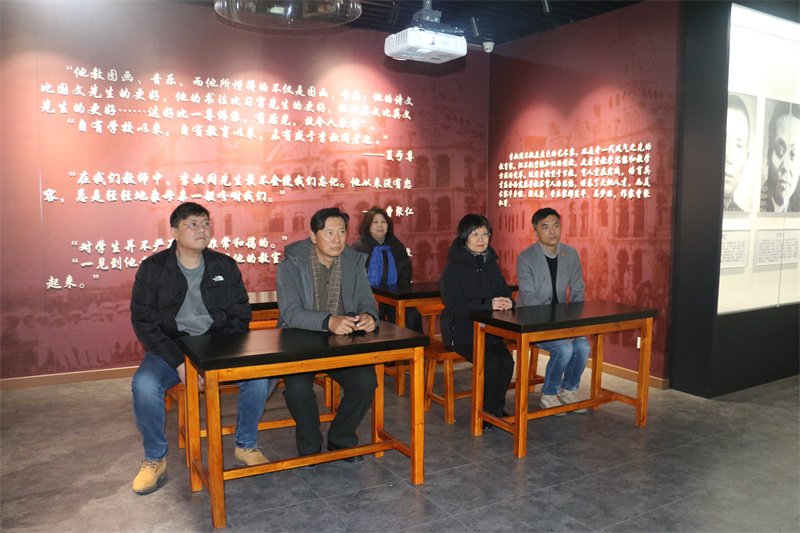 授牌儀式前,與會(huì)領(lǐng)導(dǎo)和嘉賓共同參觀了天津市美術(shù)中學(xué)李叔同藝術(shù)教育館、校史館,參觀結(jié)束后領(lǐng)導(dǎo)嘉賓到會(huì)議室舉行了授牌儀式。出席本次活動(dòng)的有,中國(guó)美術(shù)家協(xié)會(huì)理事、天津市美術(shù)家協(xié)會(huì)秘書長(zhǎng)張福有;天津市美術(shù)家協(xié)會(huì)副秘書長(zhǎng)張英楠;河北區(qū)教育局副局長(zhǎng)張弘;美術(shù)中學(xué)書記、校長(zhǎng)包乃龍;副校長(zhǎng)洪雯;美術(shù)中學(xué)美術(shù)學(xué)科教師代表,活動(dòng)由美術(shù)中學(xué)教務(wù)處主任秦媛主持。