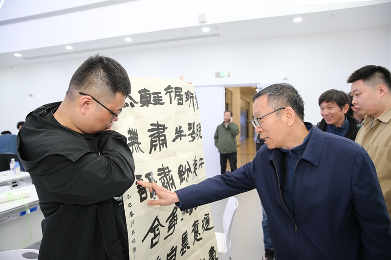 張建會(huì)主席在總結(jié)中指出,通過此次活動(dòng)看到了天津書法隊(duì)伍不斷壯大,書法水平有了很大提升。針對(duì)當(dāng)前我市書法創(chuàng)作和備戰(zhàn)全國(guó)隸書展覽情況,他強(qiáng)調(diào):一要始終堅(jiān)持守正出新,積極倡導(dǎo)雅正書風(fēng);二要深入挖掘傳統(tǒng)隸書資源,不斷汲取藝術(shù)營(yíng)養(yǎng);三要關(guān)注當(dāng)代作品,不跟風(fēng),不盲從,善于借鑒把握發(fā)展動(dòng)向;四要正確看待展覽投稿,標(biāo)準(zhǔn)要高,期望要低,放平心態(tài),精心準(zhǔn)備;五要宏觀把握,微觀調(diào)節(jié),通過展覽提升作品水平,爭(zhēng)取好成績(jī),推動(dòng)天津書法創(chuàng)作水平再上新臺(tái)階。