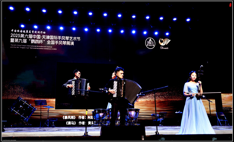 跨界合作與文化碰撞成為亮點(diǎn)。天津音樂學(xué)院青年教師張之遠(yuǎn)(手風(fēng)琴)與張雯迪(二胡)聯(lián)袂呈現(xiàn)《暴風(fēng)雨》《賽馬》,中西樂器碰撞獨(dú)特火花;北京市海淀區(qū)青少年巴揚(yáng)樂團(tuán)演奏原創(chuàng)作品《繁花•憶》,以旋律追溯歷史、傳遞文化深情。