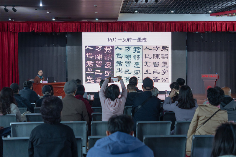 張建會(huì)主席以《書法創(chuàng)作中的傳承轉(zhuǎn)化》為題,為現(xiàn)場(chǎng)書法愛好者帶來了一場(chǎng)精彩的專題講座。張主席深耕書法藝術(shù)數(shù)十載,諸體皆精,尤其隸書在全國(guó)影響深遠(yuǎn)。講座中,張主席結(jié)合自身創(chuàng)作經(jīng)驗(yàn),圍繞中華優(yōu)秀傳統(tǒng)文化的傳承發(fā)展,深入淺出地講解了書法藝術(shù)的精髓,傳遞了“藝術(shù)為人民”的理念,讓在場(chǎng)聽眾深受啟發(fā)。