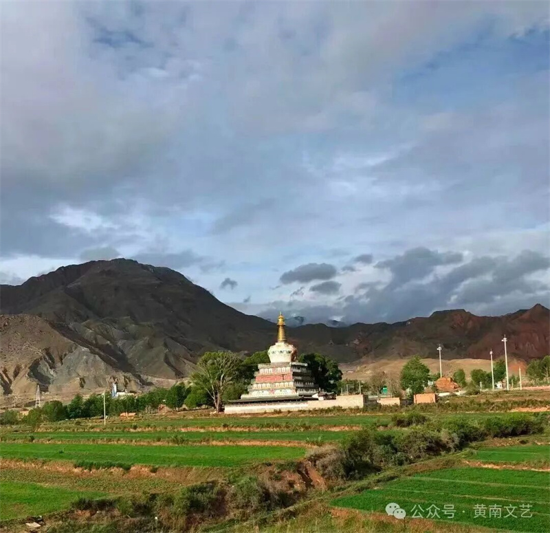 藏族文化中曼陀羅為“吉廓”,壇場(chǎng),圣賢、功德聚集之意,也是積聚福德與智慧圓滿巧妙的方法、人們心中的宇宙圖,無(wú)不讓人從痛苦中解脫,欣慰愉悅。于是,曼陀羅的形象在精湛的熱貢藝術(shù)唐卡、壁畫(huà)、泥塑、木雕、木刻、磚刻浮雕、堆繡創(chuàng)作中無(wú)處不在,無(wú)不寓意著植物與精神幻想之間的關(guān)系、人類集體潛意識(shí)中的圖騰,又好似古城在時(shí)間褶皺里結(jié)痂的傷口,每片花瓣都含有尚未愈合的鄉(xiāng)愁。 夜幕降臨,吾屯寺的海螺聲漫過(guò)草坡,隨風(fēng)飄蕩。千朵萬(wàn)朵白色風(fēng)車(chē)在星光下飛速旋轉(zhuǎn),把幾百年的悲欣離合紡成透明的絲,纏繞在古城夜空。一時(shí)間,被曼陀羅麻痹的往事又突然在我眼前浮現(xiàn)。在尕鼎叔叔緩慢的講述中,我那遠(yuǎn)望故鄉(xiāng)、一身戎裝的親爺爺神采奕奕、目光堅(jiān)毅;二爺爺、三爺爺騎著烈馬趕著牦牛群沖過(guò)寨門(mén),在青石板上迸濺出藍(lán)色火星。還有那紛亂中活下來(lái)的遷徙者,背著銅鍋,翻過(guò)鐵城山,正目瞪口呆地,站在我的故鄉(xiāng)窄小幽長(zhǎng)的每條巷道里,欣賞著家家戶戶門(mén)楣、前廳之上細(xì)膩絢麗、莊嚴(yán)素樸的彩繪。神秘的圖案、古老的神話、豐富的想象力,帶給人們的是美的享受,是清澈無(wú)比的精神追求,也讓我懂得:這座古城從來(lái)就不僅僅是地理意義上的坐標(biāo),黃河上游風(fēng)韻無(wú)限、氣勢(shì)豪邁的風(fēng)景。當(dāng)曼陀羅在廢墟上開(kāi)出第一百零八朵花,所有離散的魂魄都會(huì)循著花香歸來(lái),在隆務(wù)河的金砂里顯影成眾神聚集的壇城,游子依戀的故土。 作者簡(jiǎn)介