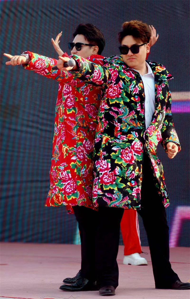 演出在歌伴舞《迎盛世舉金杯》的喜慶旋律中拉開帷幕,大氣磅礴的舞姿與嘹亮動聽的歌聲瞬間點燃現(xiàn)場氛圍。隨后,活力四射的男聲組合演唱《最炫民族風》,搭配M舞團的動感伴舞,節(jié)奏明快、感染力十足,贏得觀眾陣陣掌聲;非遺變臉表演輪番上演絕活,演員舉手投足間變幻莫測,讓現(xiàn)場群眾近距離領略傳統(tǒng)藝術的獨特魅力,喝彩聲此起彼伏。