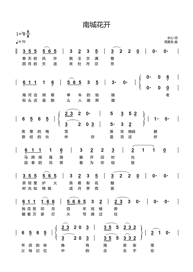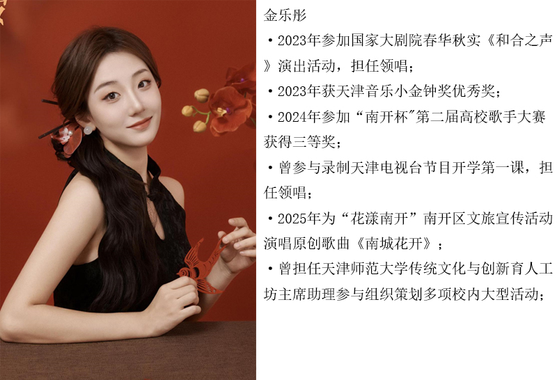 為深入學習貫徹習近平新時代中國特色社會主義思想和黨的二十大、二十屆四中全會精神,落實習近平總書記視察天津重要講話精神,堅持以人民為中心的創(chuàng)作導向,以紀念世界反法西斯戰(zhàn)爭勝利80周年、慶祝中華人民共和國成立76周年為契機,以文化人、以文惠民、以文潤城、以文興業(yè),展現(xiàn)城市文化特色和精神氣質(zhì),大力繁榮音樂創(chuàng)作,培養(yǎng)、扶持優(yōu)秀青年詞曲作家隊伍,2025年度天津市音樂家協(xié)會面向全市征集、推選出十首思想精深、藝術精湛、制作精良的精品歌曲,現(xiàn)進行線上展播。 1.歌曲《南城花開》 作詞:水心 作曲:周勇先 演唱:金樂彤
